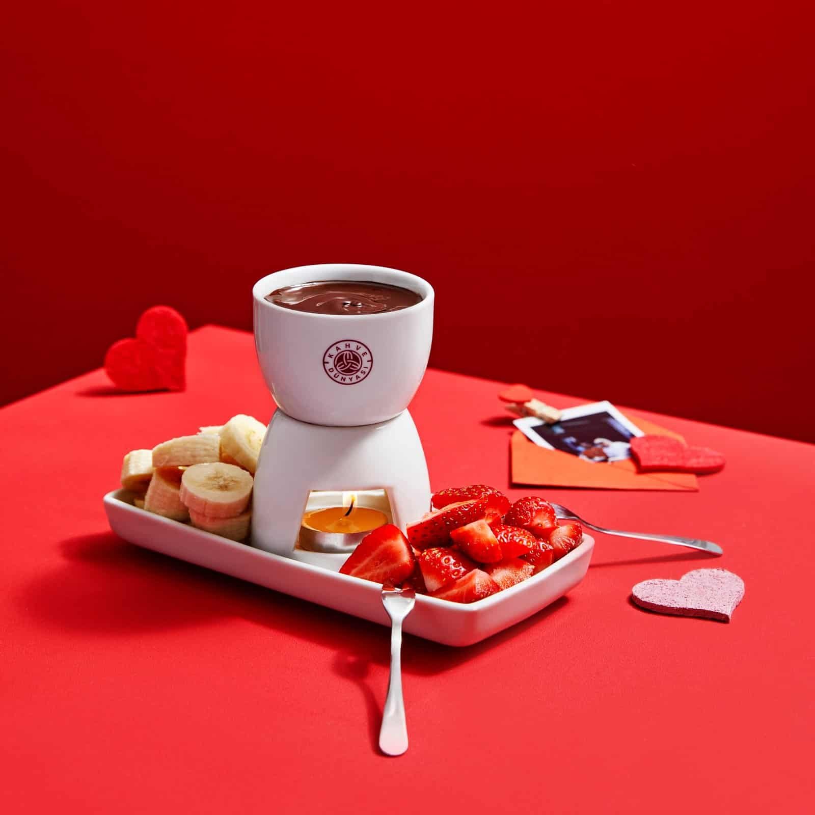 Kahve Dünyası, kalbinizi heyecanla çarptıran, görmediğiniz her an özlediğiniz, onsuz yapamadığınız sevgilinize aşkınızı bir kez daha itiraf etmenin en tatlı yolunu sunuyor. Sevgilisine, eşine farklı bir hediye arayanlar için aşkla bağlı olduğu kahve ve çikolatayla hazırladığı özel lezzetleri öneriyor. Ayrıca “Birbirimiz için eriyip biteriz” diyenleri eşsiz çikolata lezzeti ve taze meyveleriyle sunduğu Fondü’leri yemek için mağazalarına davet ediyor.