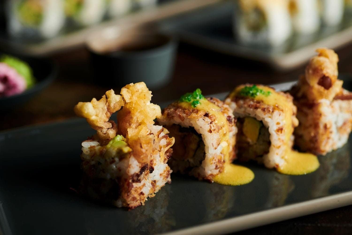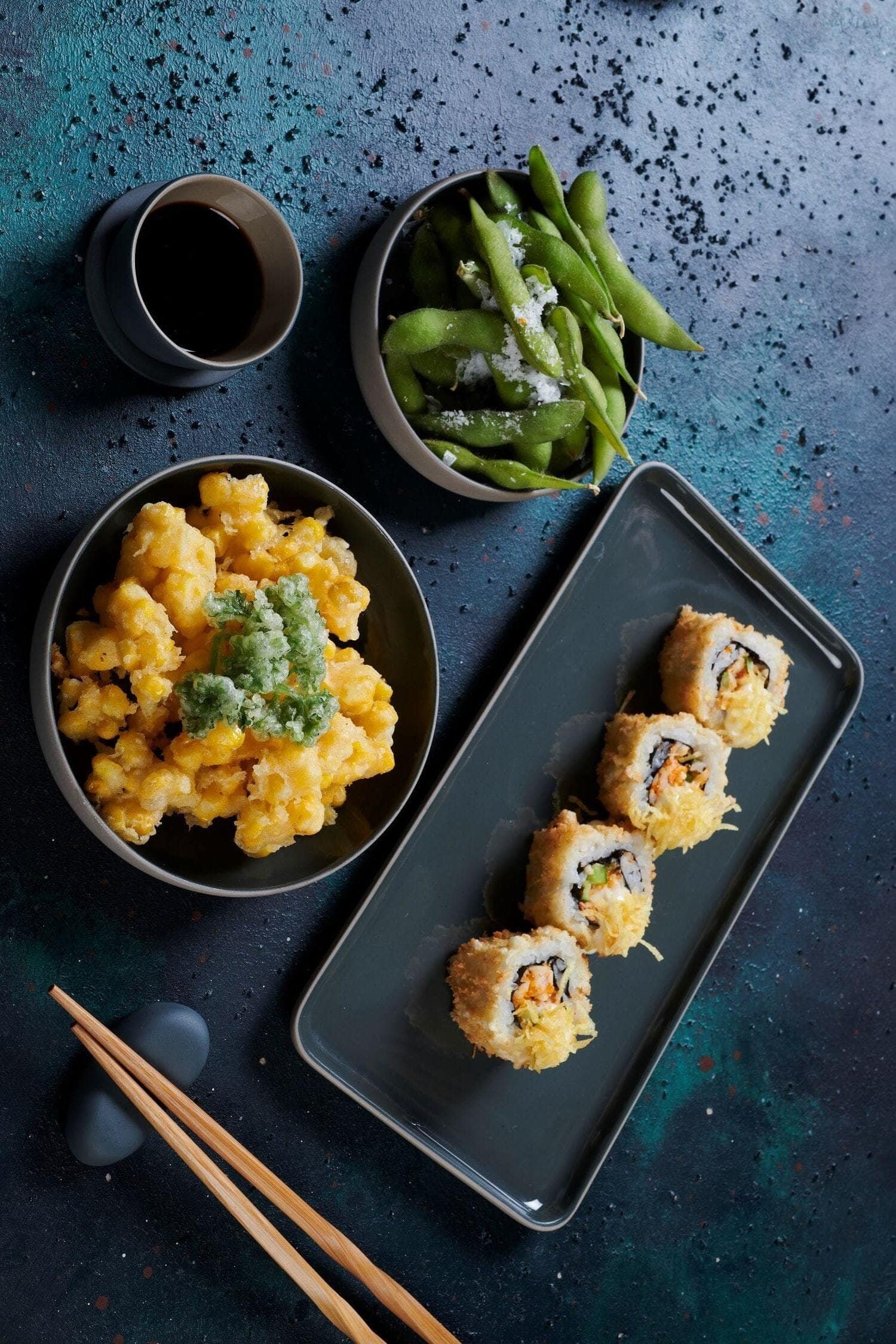 Çorbalar, atıştırmalıklar, salatalar, noodle ve tempuralar, sashimiler, nigiriler, maki ve roll’ler menüde yer alıyor.