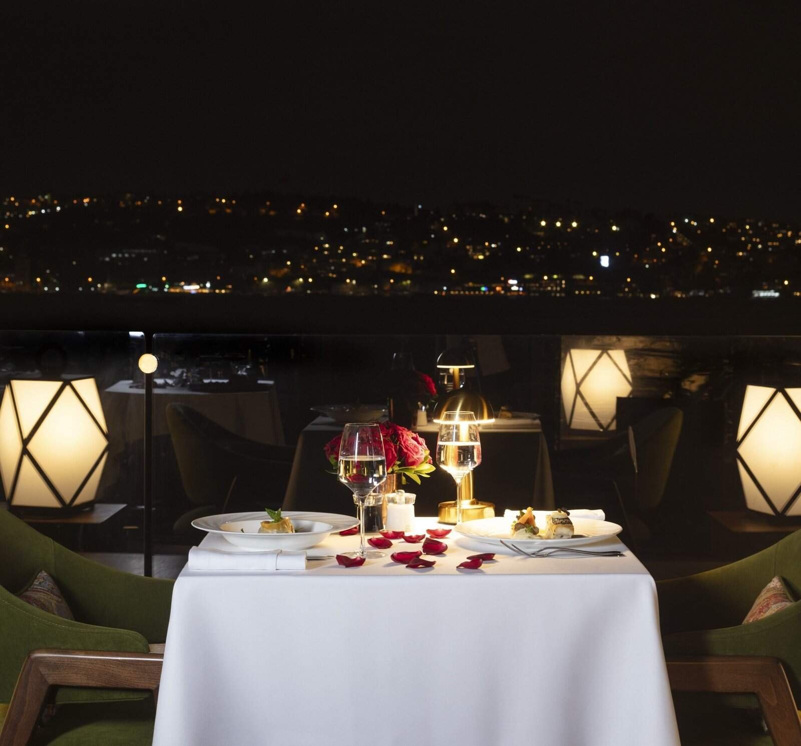 Mandarin Oriental Bosphorus, Istanbul’un tarihi dokusu ve Boğaz’ın eşsiz manzarasıyla romantik bir atmosfer sunuyor. Otelin zarif atmosferi, özel olarak hazırlanmış menüsü ve Boğaz manzarasıyla unutulmaz bir akşam yemeği vadediyor.