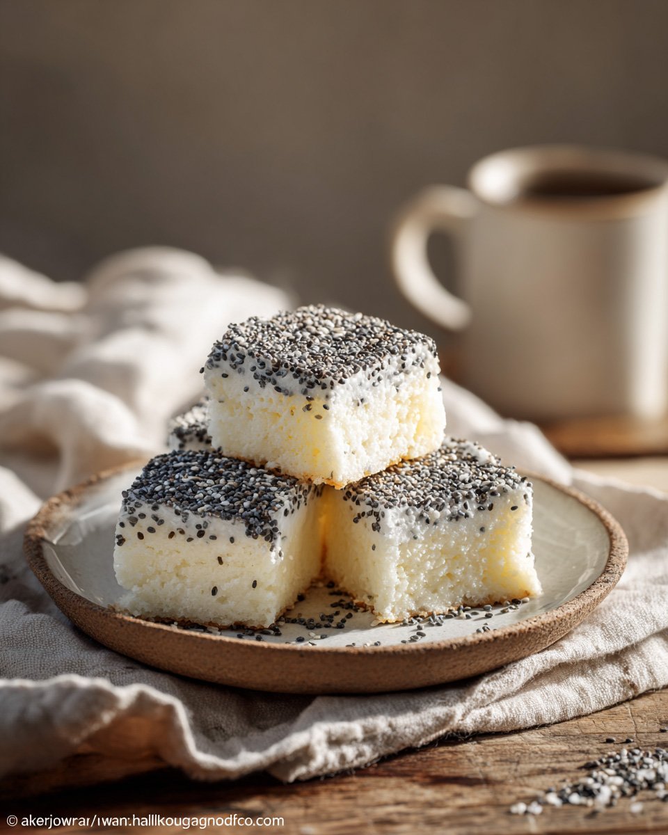 - Tatlı ılıdıktan sonra, mavi haşhaşı tek kat halinde ve bolca üstüne serpin.