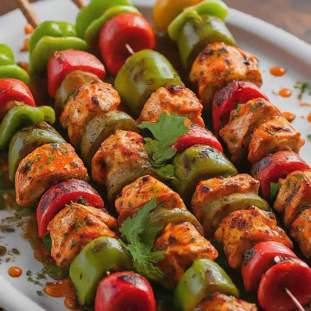 Şişleri Hazırlama: Hindi küplerini ve sebze küplerini dönüşümlü olarak şişlere dizin.
