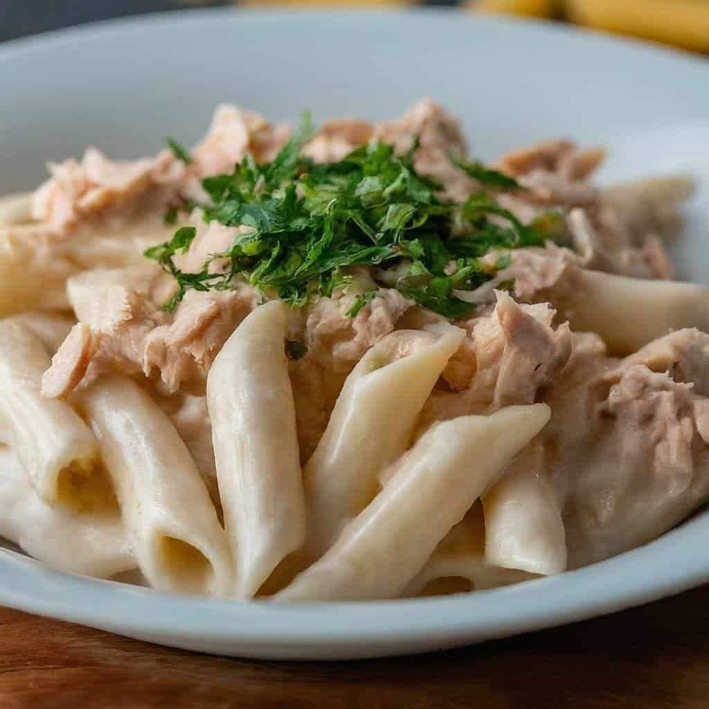 Afiyet olsun! Ton balıklı krem soslu penne, sıcak servis yapın ve afiyetle yiyin!