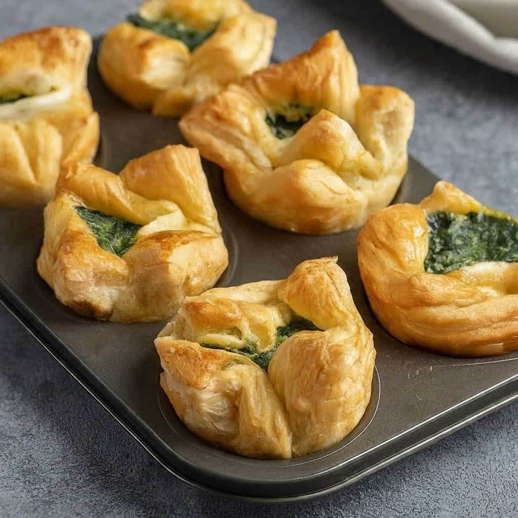 - Her birinin içine yaklaşık bir tatlı kaşığı ıspanaklı harçtan ekleyin ve milföy hamurunu kapatın.