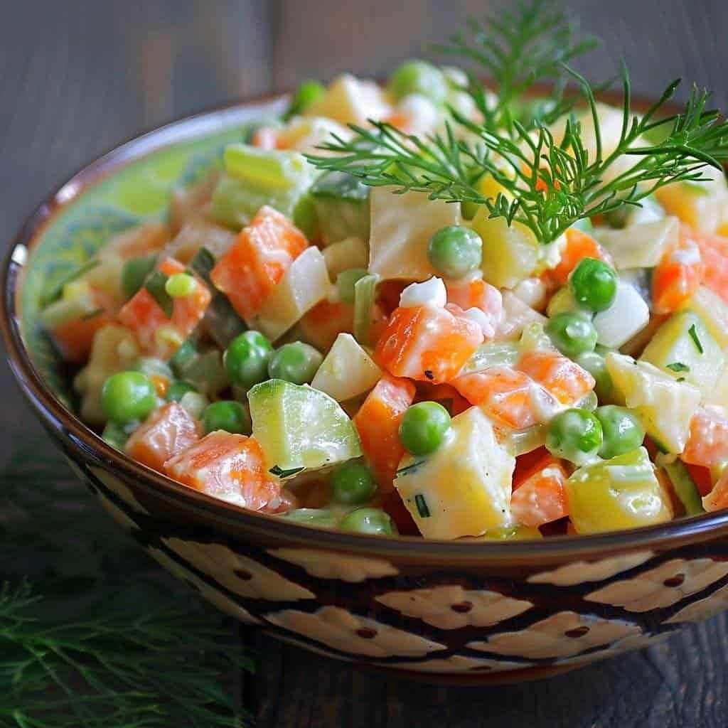 Göz alıcı sunumu: Renkli sebzeleri ve iştah açıcı sunumuyla Sebzeli Rus Salatası, sofralarınızın yıldızı olacak.
