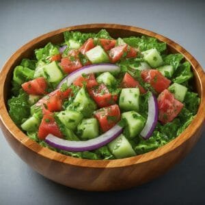 - Hazırlanan salata marul yapraklarının üzerine dökülür.